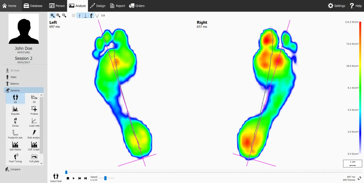 We use a force plate to determine the direction, force and peak pressures that can cause pain and injury when combined with muscle and joint dysfunction or poor tissue viability.